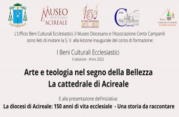ASSOCIAZIONE CENTO CAMPANILI - IL CALENDARIO DELLE LEZIONI CLICCA QUI_VIDEO INTERVISTA - PRESENTAZIONE CORSO_https://youtu.be/l6Haoiw7Qng L'Associazione Cento Campanili propone un corso di formazione su "I Beni Culturali Ecclesiastici" giunto alla decima edizione, dal titolo Arte e Teologia nel segno della Bellezza: la Cattedrale di Acireale. Infatti, il corso, che si svolgerà…