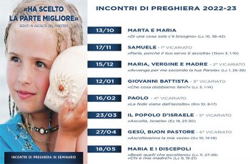 Si riaprono con gioia le porte del Seminario vescovile di Acireale dopo gli anni di pausa a causa dell'emergenza pandemica. Gli incontri di preghiera mensili, aperti a tutti e dal tema "HA SCELTO LA PARTE MIGLIORE, Seduti in ascolto del Maestro" , prendono spunto dalle indicazioni pastorali di mons.