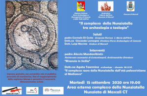 Clicca qui e scarica la locandina Martedì 15 settembre alle ore 19.00, nell'Area esterna complesso della Nunziatella, in Nunziata di Mascali, si terrà l'incontro dal tema "Il complesso della Nunziatella tra archeologia e teologia" PROGRAMMA Saluti Padre Carmelo Di Costa, arciprete poarroco Santa Maria…