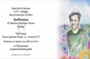 Domenica 30 agosto 2020 alle ore 18.00 si terrà nella Villa Pennisi in Piazza Agostino Pennisi, 29 - Acireale la presentazione del libro "Quell'assenza" di Valentino Sebastiano Trovato Barefoot Scarica la locandina L'evento ha lo scopo di presentare gli scritti che Valentino T. B ha lasciato e che, trovati…