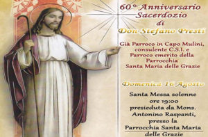 Clicca qui e scarica la locandina La comunità diocesana si appresta a festeggiare il 60° anniversario dell’ordinazione sacerdotale di don Stefano Presti, avvenuta il 14 agosto 1960 con l’imposizione delle mani da parte dell’allora vescovo Mons. Salvatore Russo. Don Stefano, già parroco in Capo Mulini e Santa Maria delle…