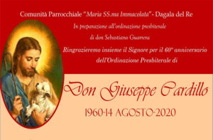 La comunità diocesana si appresta a festeggiare il 60° anniversario dell’ordinazione sacerdotale di don Giuseppe Cardillo, avvenuta il 14 agosto 1960 con l’imposizione delle mani da parte dell’allora vescovo Mons. Salvatore Russo. Clicca qui e scarica la Locandina Don Giuseppe, originario della comunità parrocchiale Maria SS. Immacolata in Dagala del Re, già parroco della…
