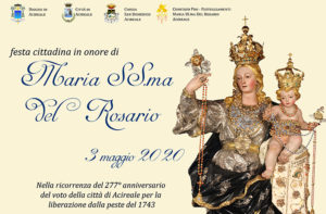 La festa della Madonna del Rosario si svolge nella città di Acireale, oltre il 7 ottobre, la prima domenica di Maggio, ricorrenza del voto della città per la liberazione dalla peste del 1743, e quest’anno, domenica 3 maggio, ricorre il 277° anniversario. A causa dell’emergenza pandemica Covid-19 in corso, la ricorrenza assume un significato particolare. Il rettore don Marcello Pulvirenti della chiesa di San Domenico in…