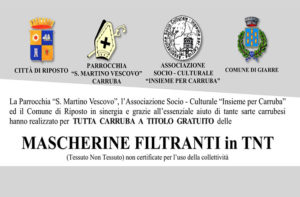 Scarica la locandina In questo tempo di emergenza causata dall'epidemia Covid-19, ai residenti di Carruba saranno distribuite a titolo gratuito delle Mascherine Filtranti in TNT (tessuto non tessuto). L'iniziativa è promossa dalla comunità parrocchiale "San Martino vescovo" di Carruba, dall'Associazione socio- culturale "Insieme per Carruba", in sinergia con i…