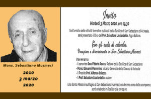 Scarica invito Nel decimo anno della scomparsa di mons. Sebastiano Musmeci, Martedì 3 marzo 2020, alle ore 19.30 nella Basilica di San Sebastiano in Acireale, sarà presentato il libro del prof. Salvatore Licciardello (Algra Editore) dal titolo "Con gli occhi di colomba, Vocazione e discernimento in don Sebastiano Musmeci", Interverranno: Don…