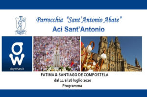 Scarica il Programma La comunità parrocchiale Sant'Antonio Abate in Aci Sant'Antonio, guidata da don Angelo Milone, organizza un pellegrinaggio a Fatima e a Santiago de Compostela da sabato 11 a sabato 18 luglio 2020. Per prenotarsi contattare don Angelo Milone …