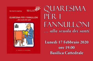 Scarica la Locandina Lunedì 17 Febbraio 2020, alle ore 19.00, nella Basilica Cattedrale di Acireale verrà presentato il 15° volume di “Quaresima per i fannulloni…alla scuola dei Santi” di P. Max Huot de Longchamp. Interverranno mons. Antonino Raspanti, vescovo di Acireale, don Gaetano Pulvirenti,…