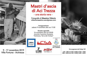 Scarica la Locandina "Mastri d'ascia di Aci Trezza, una storia vera ", questo il titolo scelto da Massimo Vittorio per la sua mostra fotografica che si terrà ad Aci Trezza a Villa Fortuna, dal 9 al 17 novembre; un racconto fotografico in cui l'autore entra dentro l'animo dei mastri d'ascia…