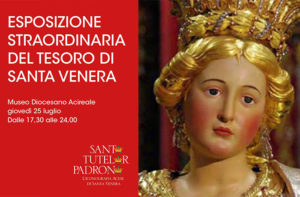 Scarica la locandina Giovedì 25 luglio 2019, in occasione dell'itinerario di fede e di arte raffigurante Santa Venera, Vergine e Martire, e Patrona della città di Acireale dal tema: “L’iconografia acese di Santa Venera – Santa tutelar padrona, nel museo diocesano dalle ore 17.30 alle ore 24.00 avverrà un' esposizione straordinaria del Tesoro di…