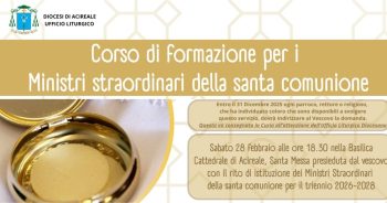 L’Ufficio Liturgico Diocesano, guidato da don Roberto Strano, comunica che, nei mesi di gennaio e febbraio 2026, si terrà il corso di formazione per i Ministri straordinari della Santa Comunione. Il corso è rivolto sia a coloro che riceveranno per…