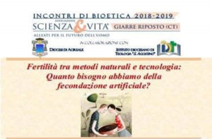 Scaric la locandina L'Associazione Scienza e Vita, in occasione dei periodici incontri di Bioetica, organizza Venerdì 17 maggio 2019 nella Chiesa Oratorio S. Filippo Neri, Via Callipoli 150, Giarre , alle ore 17,30, un incontro dal tema: "Fertilità tra metodi naturali e tecnologia: Quanto bisogno abbiamo della fecondazione artificiale?" Intervengono:…