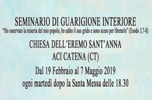 Scarica la Locandina Inizierà il 19 febbraio per concludersi il 7 maggio nella chiesa dell’ Eremo di Sant’Anna in Aci Catena il “Seminario di guarigione interiore”. Dodici appuntamenti che si svolgerranno ogni martedì dopo la Santa Messa delle ore 18,30 e che affronteranno diversi temi all’insegna delle parole di papa Francesco:…