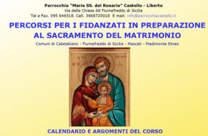 L'itinerario, proposto dalla parrocchia Maria SS. del Rosario in Fiumefreddo di Sicilia - Castello per i fidanzati appartenenti ai comuni di Calatabiano, Fiumefreddo di Sicilia, Mascali e Piedimonte Etneo, intende prepare a ricevere il sacramento del matrimonio per favorire una maggiore consapevolezza nel cammino della formazione della famiglia. Scarica…