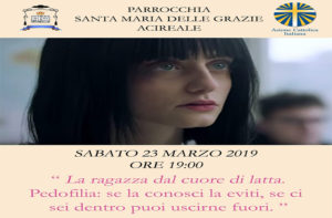 Scarica la Locandina Sabato 23 marzo 2019, alle ore 19, nei locali della parrocchia Santa Maria della Grazie, organizzato in collaborazione con l’Azione Cattolica, avrà luogo un incontro con gli operatori pastorali e i genitori dei bambini della catechesi sul tema: “La ragazza dal cuore di latta. Pedofilia: se…