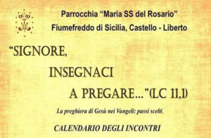 Scarica la Locandina “Gesù insegnaci a pregare” è il tema di un calendario di incontri organizzati dalla parrocchia Maria SS. del Rosario di Fiumefreddo di Sicilia guidata da don Egidio Vecchio. Gli appuntamenti, sei in tutto avranno luogo alle 18,30 di ogni mercoledì a partire dal 13 febbraio e…