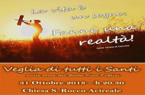 “La vita è un sogno, fanne realtà” (Santa Tersa di Calcutta) è il tema della veglia di TUTTI I SANTI, organizzata dalla Pastorale Giovanile, che si terrà il 31 ottobre 2018, alle ore 20,30 nella chiesa di san Rocco in Acireale. L’importante momento di preghiera ricalcherà anche le orme del beato…
