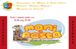 L’oratorio Hakuna Matata della parrocchia S.Maria di Porto Salvo in Mangano informa che a partire da sabato 27 ottobre 2018 avrà inizio l’Oratorio Invernale “Mani in pasta“. Scarica la Locandina…