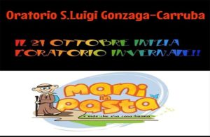 L’oratorio San Luigi Gonzaga in Carruba (Riposto) comunica che a partire da domenica 21 ottobre 2108 avrà inizio l’Oratorio Invernale “Mani in pasta“. Da mercoledì 17 ottobre sarà possibile iscriversi a partire dalle ore 16.00 Scarica la locandina…