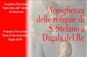 Sabato 21 luglio 2018, giornata di accoglienza delle reliquie di Santo Stefano a Dagala del Re, organizzata dall’arcipretura parrocchiale Santa Maria dell’Indirizzo di Aci Bonaccorsi, guidata da don Giovanni Cavallaro e dall’arcipretura parrocchiale di Maria SS. Immacolata di Dagala del Re, guidata da don Santo Leonardi. Il programma prevede alle…