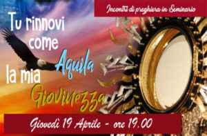 Giovedì 19 aprile 2018 alle ore 19:00 nella Cappella Maggiore del Seminario Vescovile di Acireale, continua il percorso mensile di incontri di preghiera “Tu rinnovi come aquila la mia giovinezza” Il tema dell’incontro sarà “Paolo, il desiderio di andare oltre”. Il Seminario apre le porte ad amici, parenti, fedeli tutti della diocesi e in particolare alle comunità…