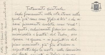 Pubblichiamo integralmente il testamento spirituale di Giuseppe Malandrino, Vescovo di Acireale (dal 1979 al 1998) e Vescovo di Noto (dal 1998 al 2007), che ha reso l’anima a Dio nella mattinata di domenica 3 agosto 2025. Riporto, innanzitutto, quanto ebbi a scrivere nel passato in un testamento olografo, poi…