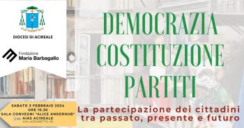 ACIREALE. CONVEGNO: “DEMOCRAZIA, COSTITUZIONE e PARTITI: la partecipazione dei cittadini tra passato, presente e futuro” Articolo di Francesco Leonardi La conferenza “DEMOCRAZIA, COSTITUZIONE e PARTITI: la partecipazione dei cittadini tra passato, presente e futuro”, svoltasi sabato 3 febbraio, nella sede AIAS di Acireale, voluta dal vescovo di Acireale Antonino Raspanti ,…