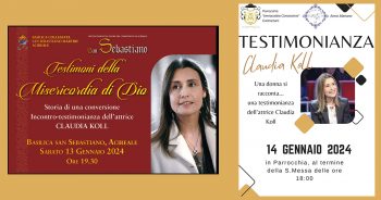 Articolo di Chiara Costanzo La diocesi di Acireale, in particolare la Basilica Collegiata San Sebastiano martire e la comunità parrocchiale Immacolata Concezione di Cannizzaro, propone un incontro-testimonianza con l’attrice Claudia Koll. La Basilica Collegiata San Sebastiano martire ed il comitato festeggiamenti invitano a fare memoria della necessaria conversione dei cuori. L’invito è per sabato 13 Gennaio 2024 alle ore 19.30 per prepararsi alla…