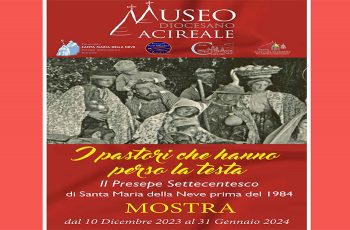 Dal 10 dicembre al 31 gennaio il Museo diocesano apre le porte ai visitatori per la mostra "I pastori che hanno perso la testa" Si avrà l'opportunità di conoscere un prezioso tesoro d’arte e di fede che racconta la storia del Presepe Settecentesco di Acireale. A seguito del restauro del 1984 l'opera di…