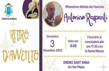 Domenica 3 dicembre 2023, all'Eremo Sant'Anna di Aci San Filippo, monsignor Antonino Raspanti, vescovo della diocesi di Acireale, terrà il ritiro d’Avvento, tempo liturgico che precede e prepara al Santo Natale. Il momento di particolare importanza spirituale è aperto a tutti. La preghiera delle lodi alle ore 9.00 darà inizio alla giornata che si concluderà alle…