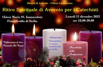 Lunedì 11 dicembre - ore 18 - Fiumefreddo di Sicilia Don Carmelo Sciuto, direttore Ufficio catechistico Diocesano: "L'Avvento è un periodo di attesa e speranza che aiuta a preparare il cuore per incontrare Gesù e testimoniarlo" L'Ufficio Catechistico Diocesano, guidato da don Carmelo Sciuto, organizza il tradizionale RITIRO DIOCESANO DI…