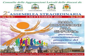 Si terrà nella città dei cento campanili il secondo incontro interdiocesano: “Dalla confusione alla sinfonia: percorsi, concretizzazioni e prospettive del cammino sinodale”. Presenti insieme vescovi di Acireale, Caltagirone, Catania e Nicosia Sabato 2 settembre ad Acireale si terrà la seconda assemblea straordinaria delle Consulte delle Aggregazioni laicali delle diocesi di…